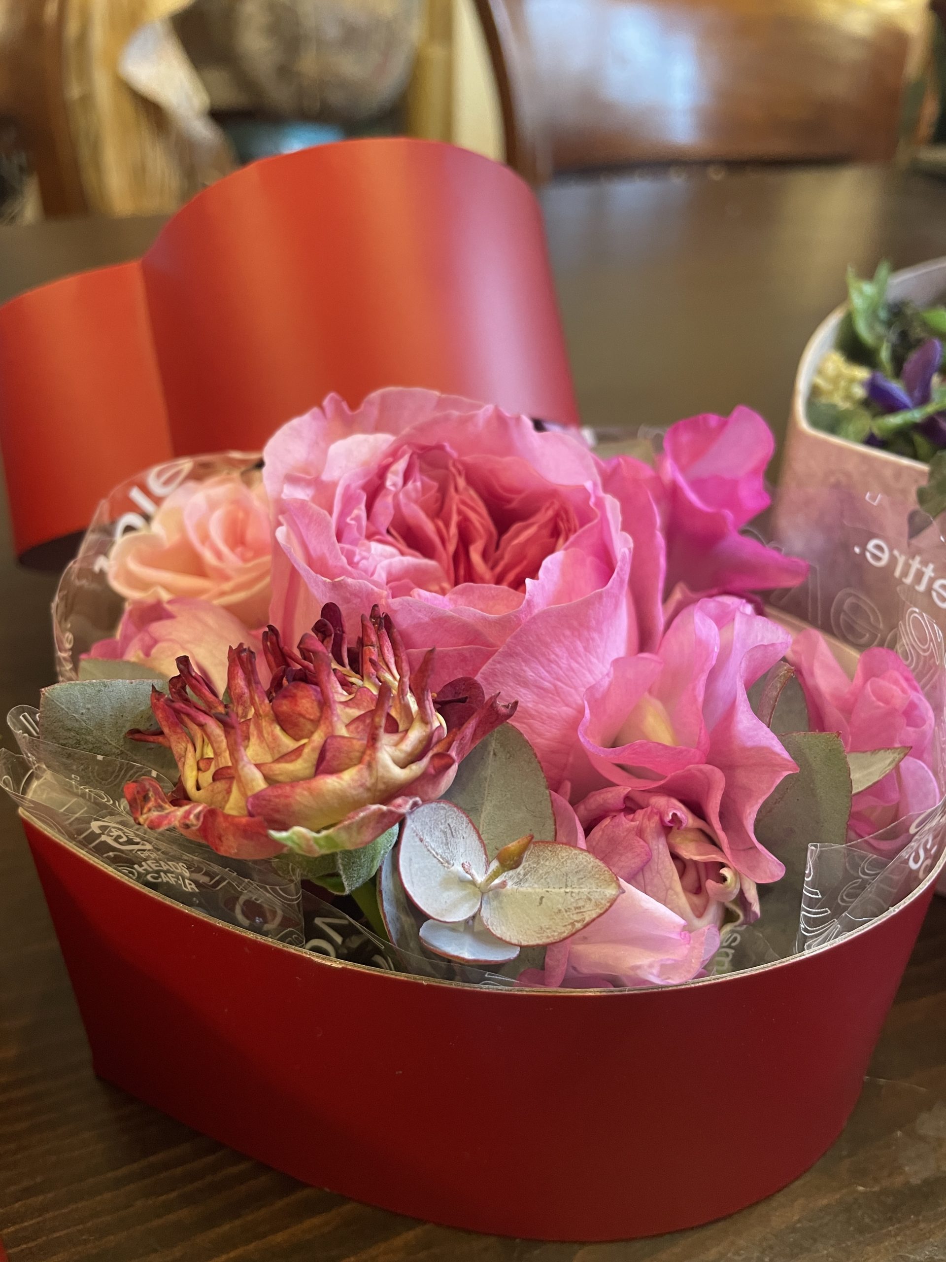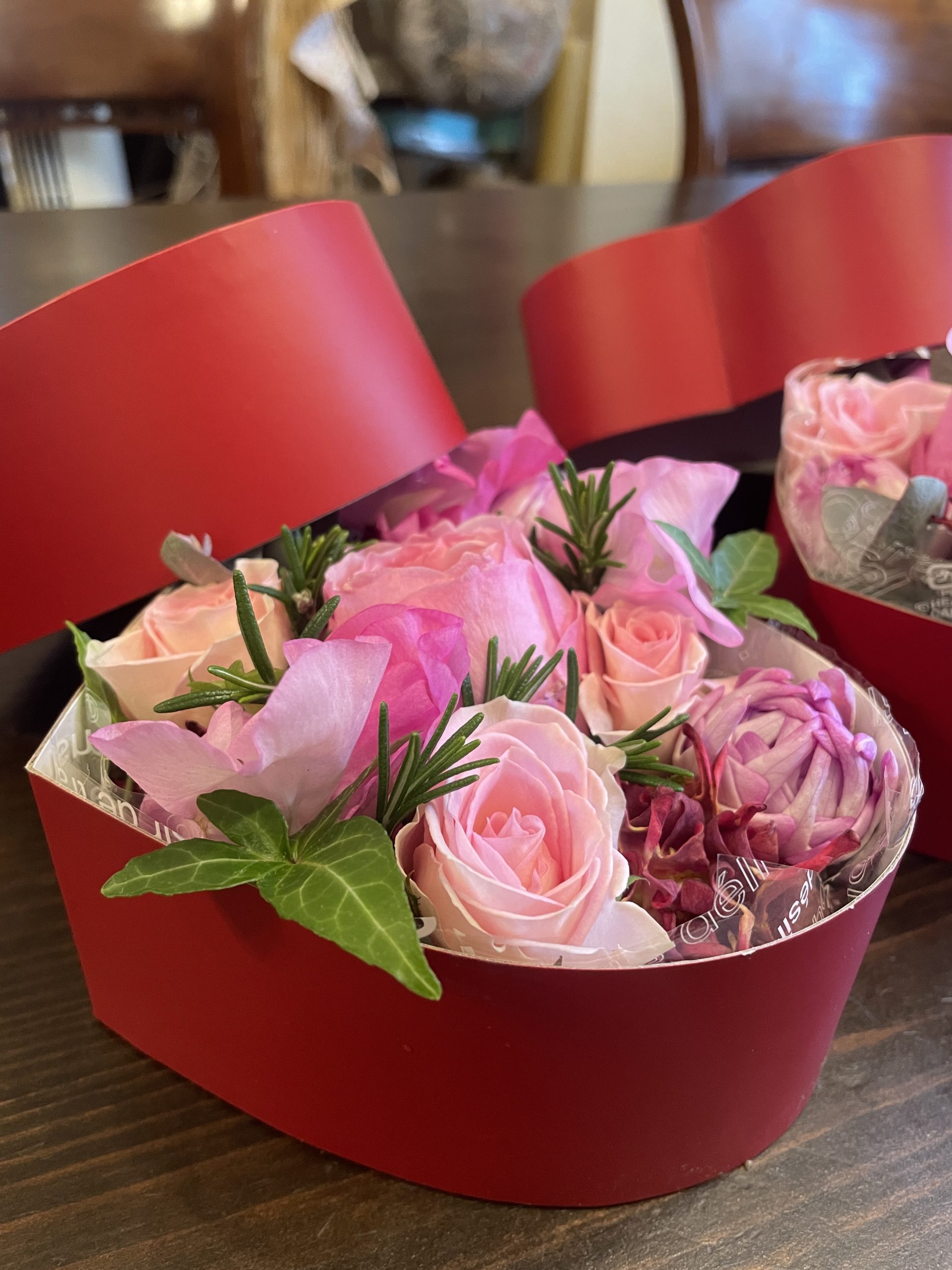花材も毎回、色んなピンク系が見られるので、毎回ワクワクお待ちくださっている人気のパリボックスアレンジ💐です☺︎