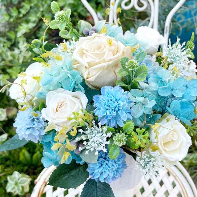 生花の一番美しい時期に、特殊な加工を施し、枯れることがなく水やりの必要もないことが大きな特徴ですので、長く飾って頂きたい大切な方への贈りもの、場面で活躍します。お世話になった方への贈りものに✨